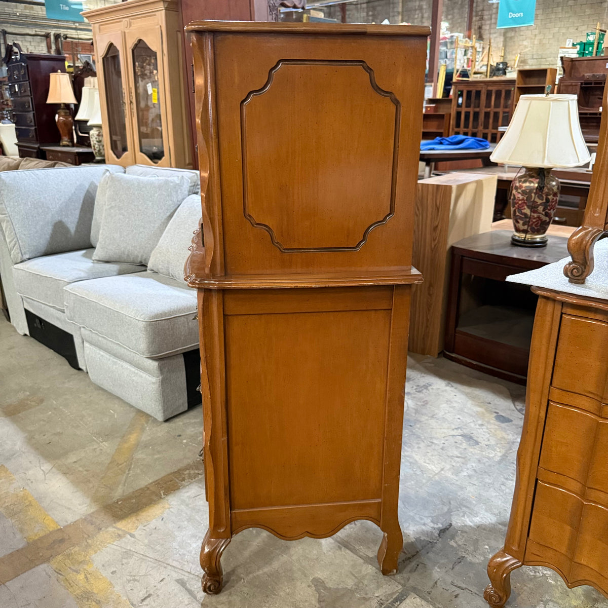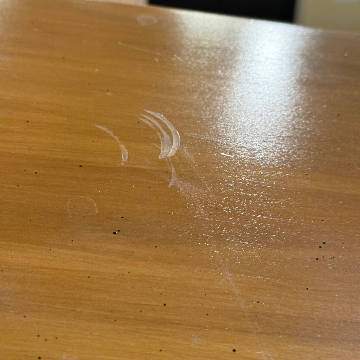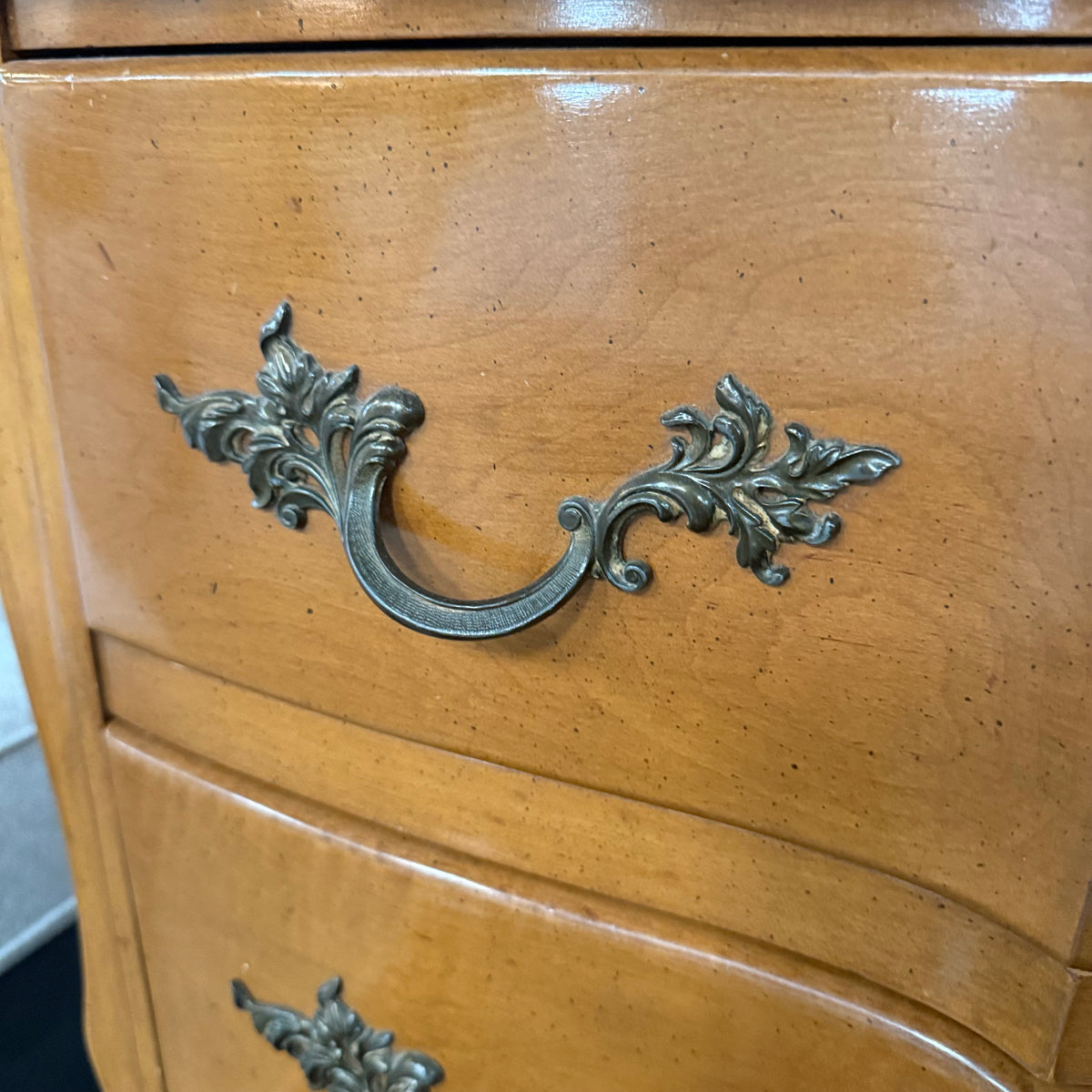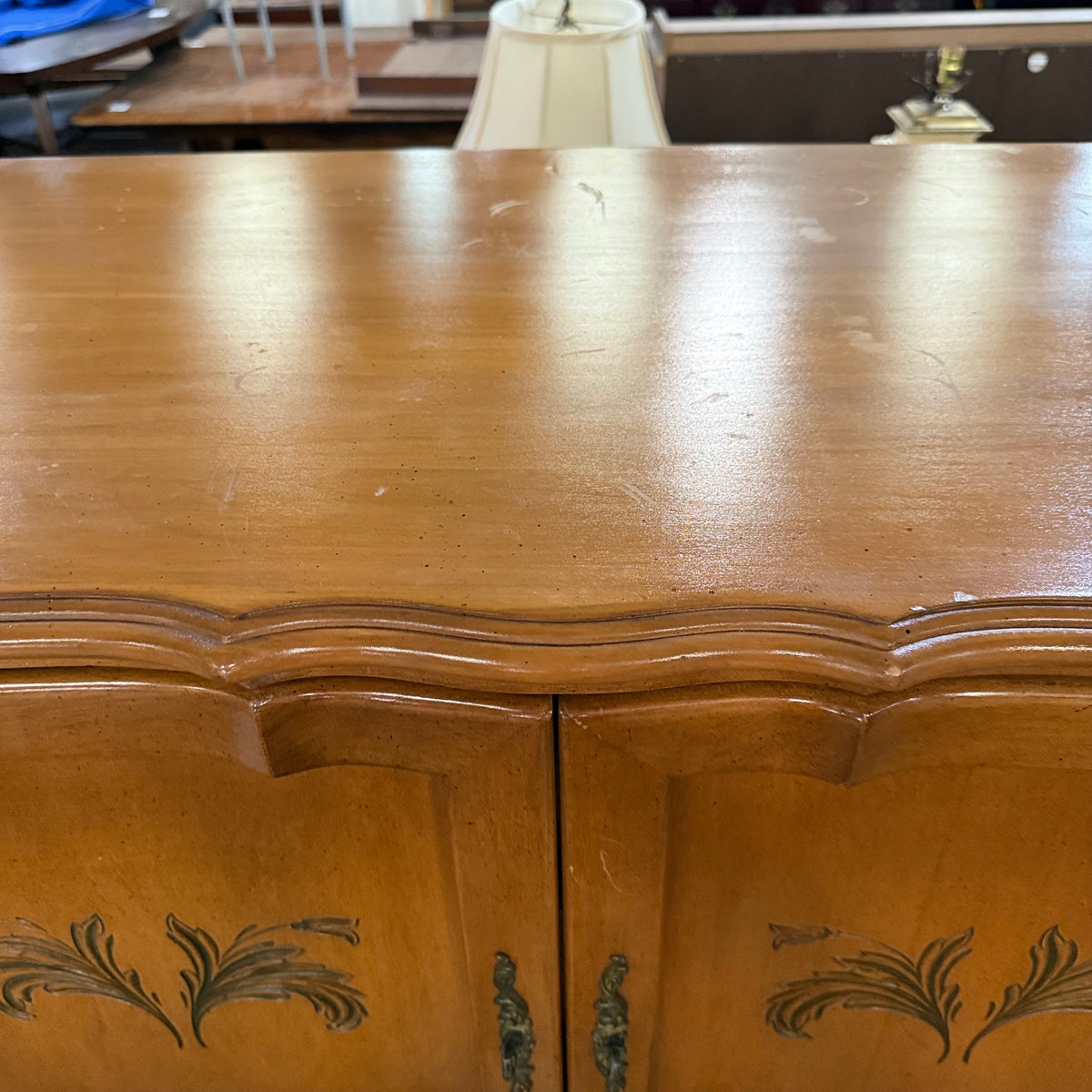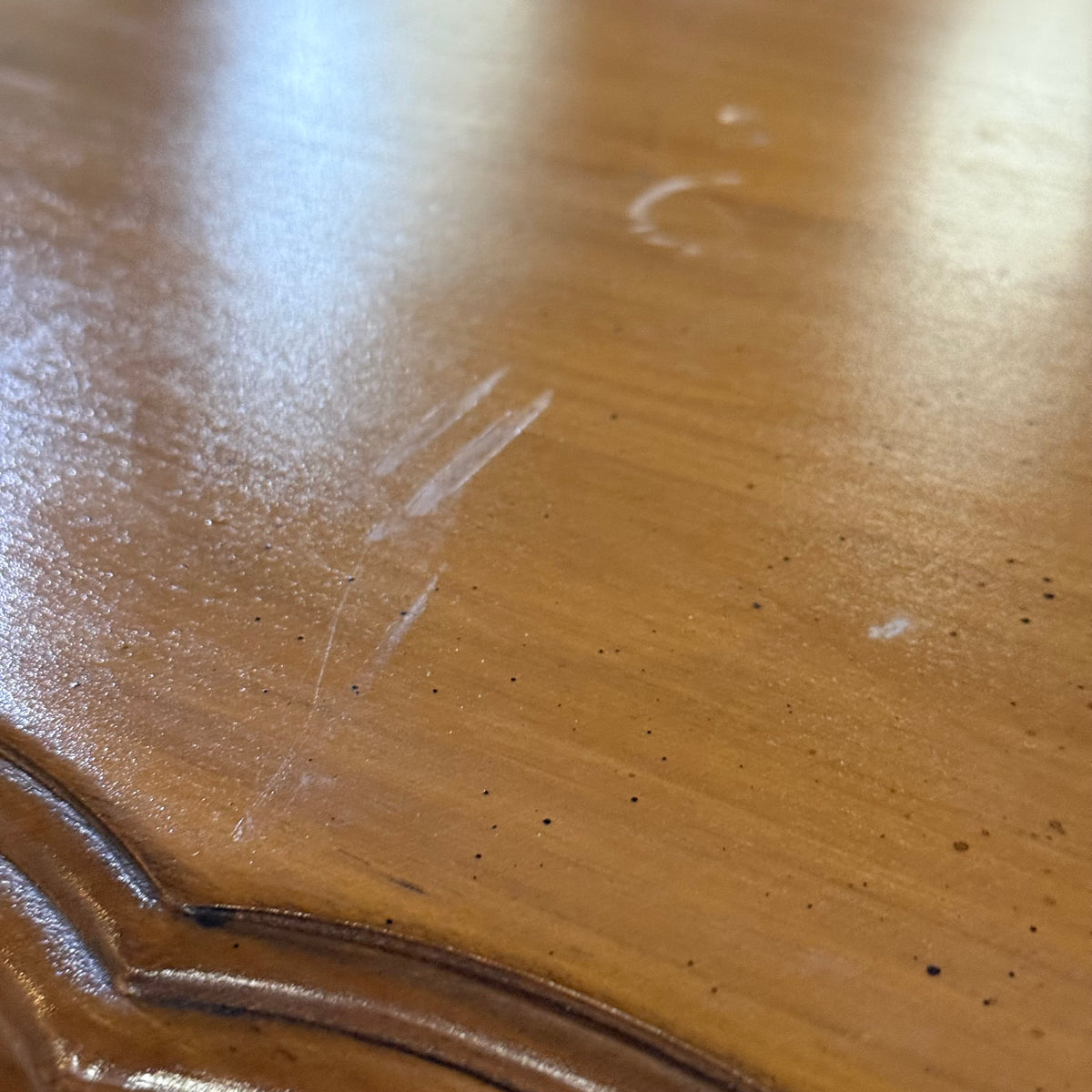 Please note, there are a few chips towards the front of this dresser. There are also a couple of light and deep scratches along the surface top and some chipping towards the feet (see photos).