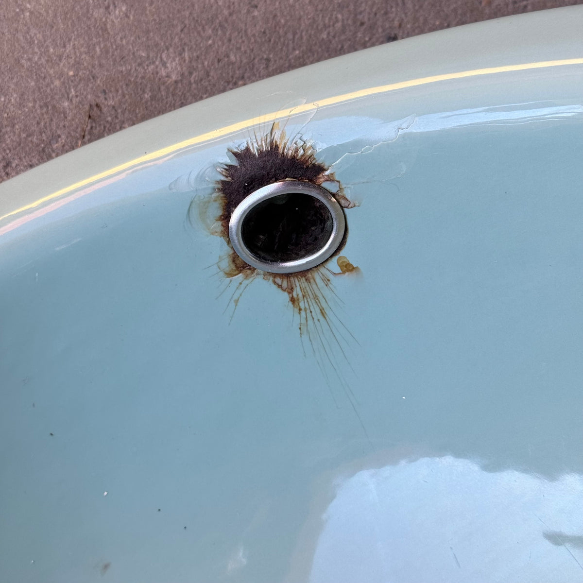 Please note, there are many chips to the enamel finish and some rusting towards the overflow drain area (see photos).