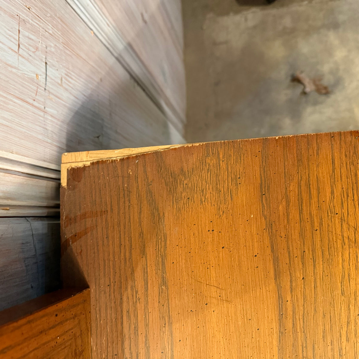 Please note, there is an extensive amount of wear to this dresser, especially along the surface top including many chips to the veneers and overall finish in general. There are also many chips and scuffs to the door and drawer fronts. This dresser is also missing the original pull hardware that goes on the two door fronts (see photos).