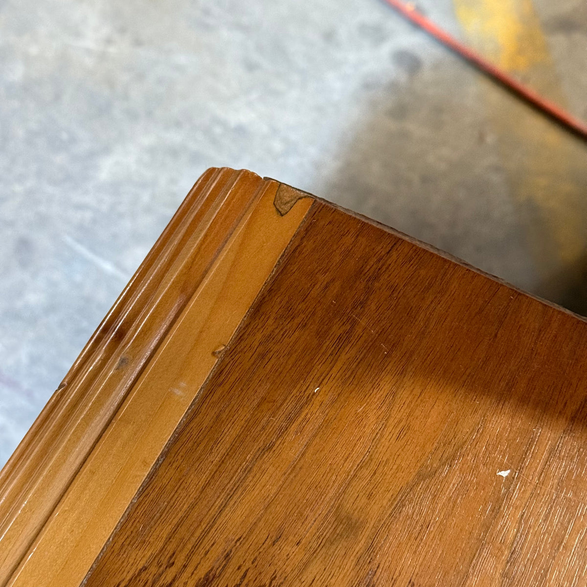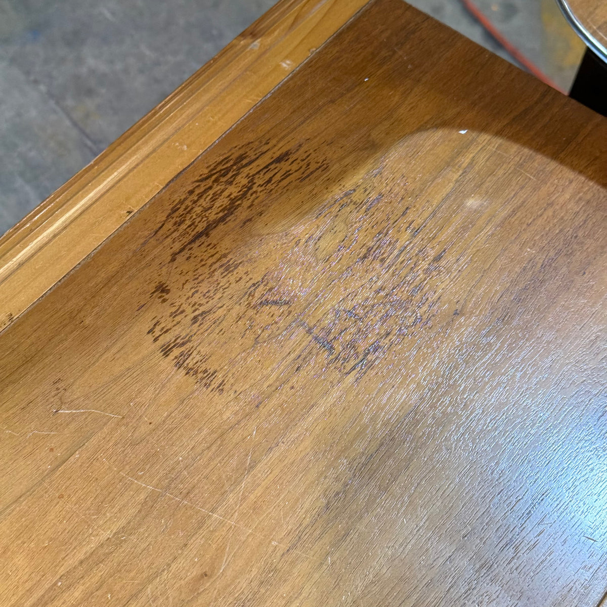 Please note, the vanity has overall wear including scuffs, scratches and some damage to the finish along the surface top (see photos). The mirror also has small losses to the silvering in some areas (see photos).