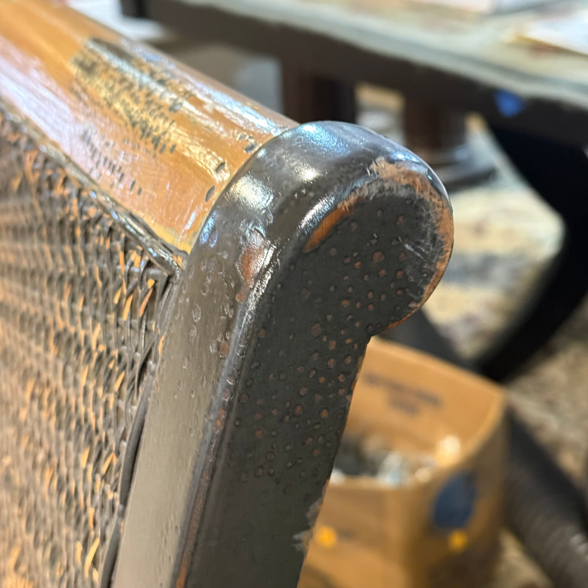 Please note, there is overall wear and chipping to the finish along the frame of this bench (see photos).