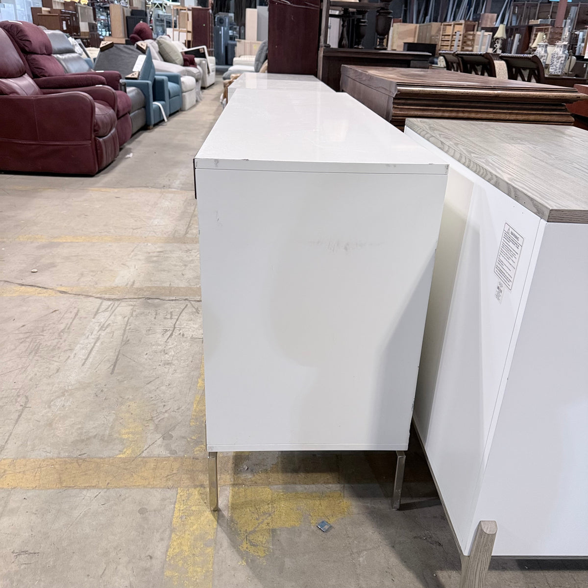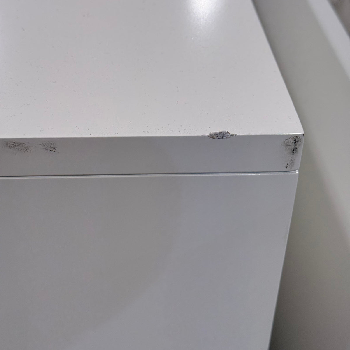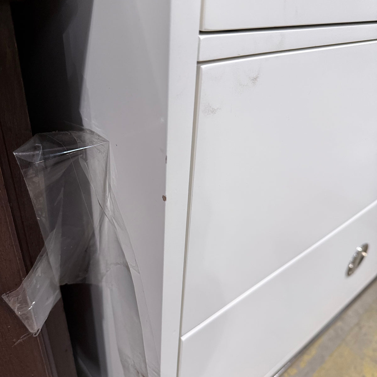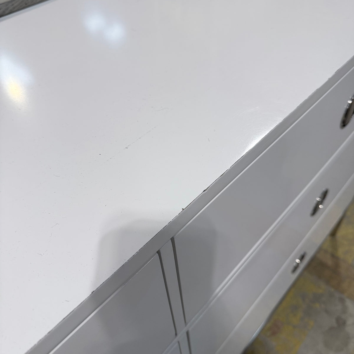 Please note, there are many scuffs, scratches and chips to the finish on the surface top of this dresser, especially along the front edge and towards some of the corners. There are also some scuffs and light scratches to the sides (see photos).