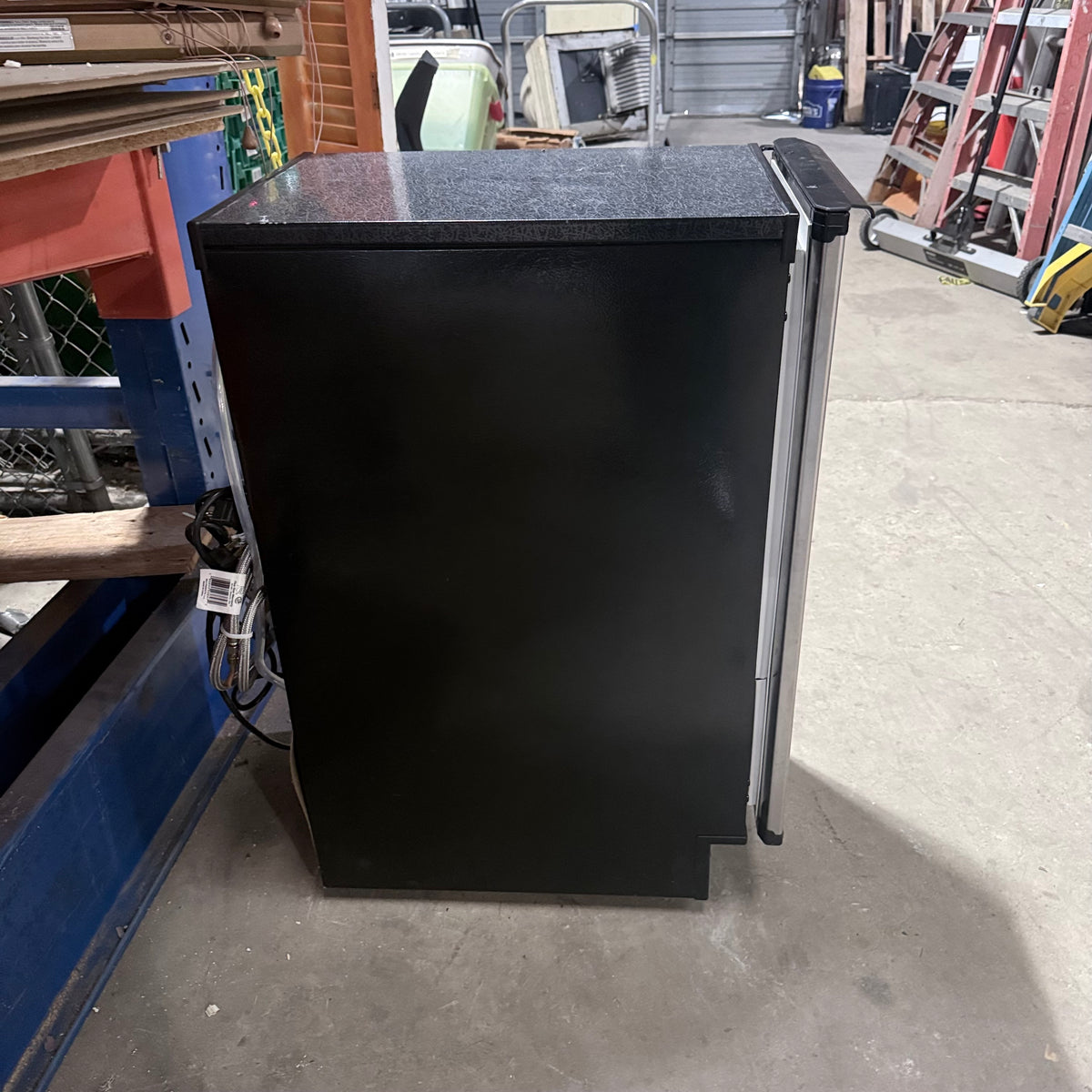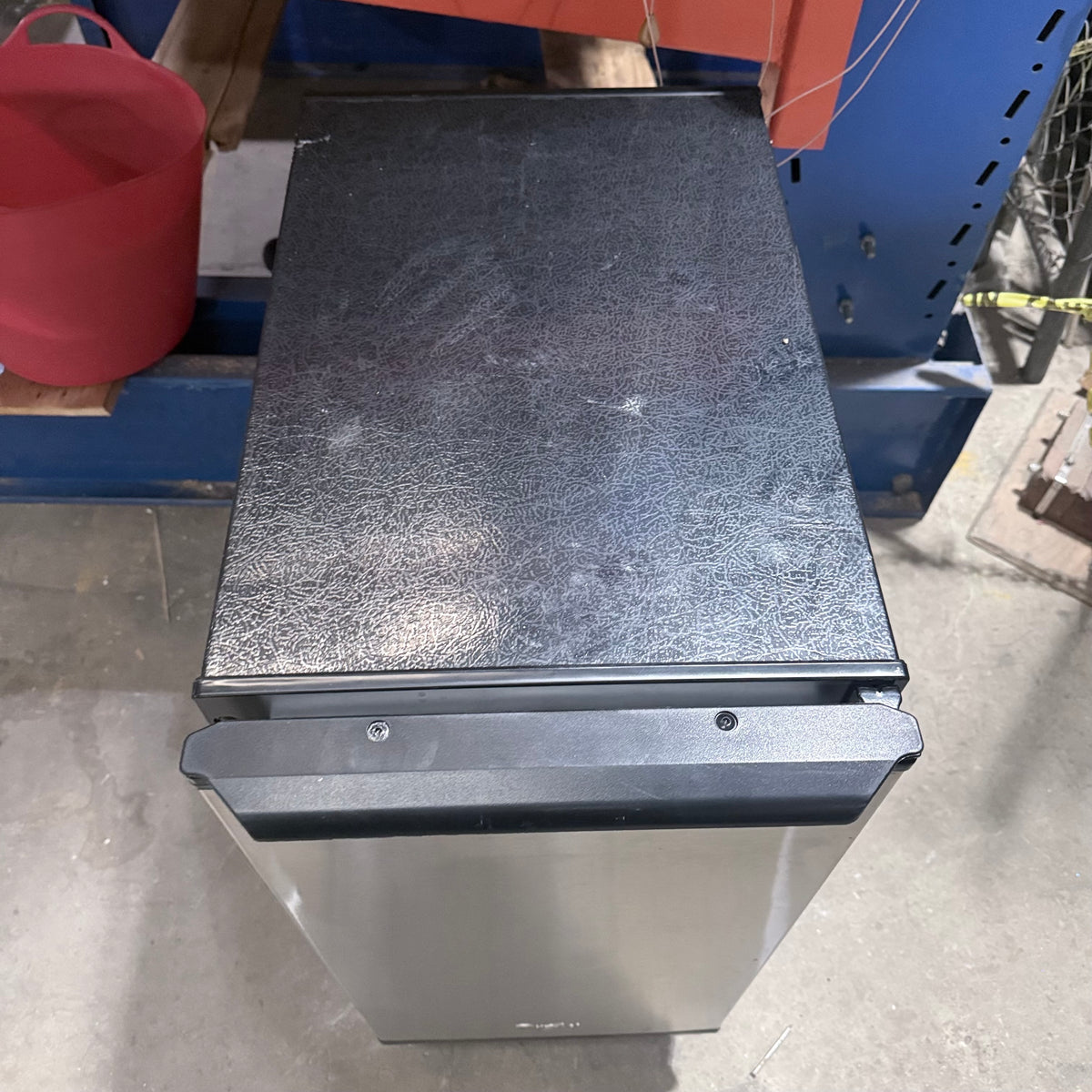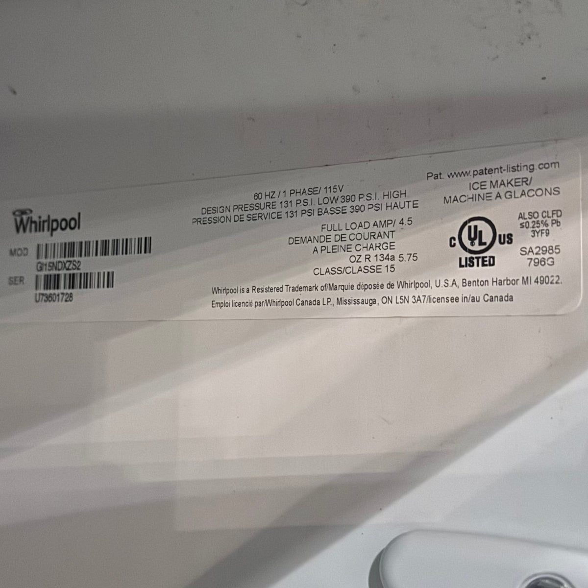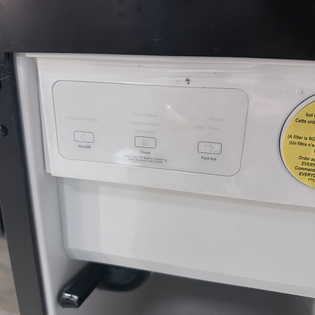 This product is a previously owned stainless steel Whirlpool built-in ice maker. Features: